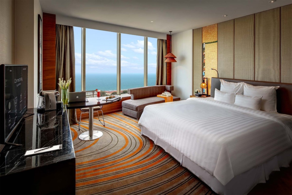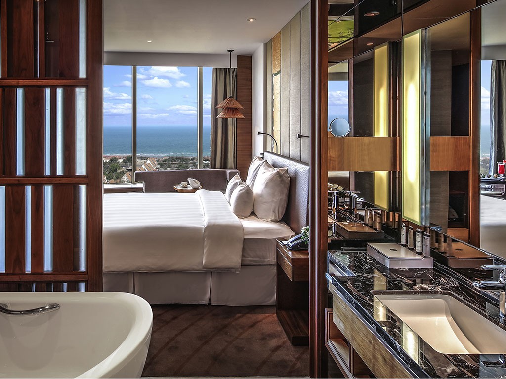 Phòng nghỉ được bài trí ấm cúng với nội thất hiện đại, đảm bảo giấc ngủ ngon và không gian riêng tư trọn vẹn cho du khách.